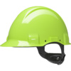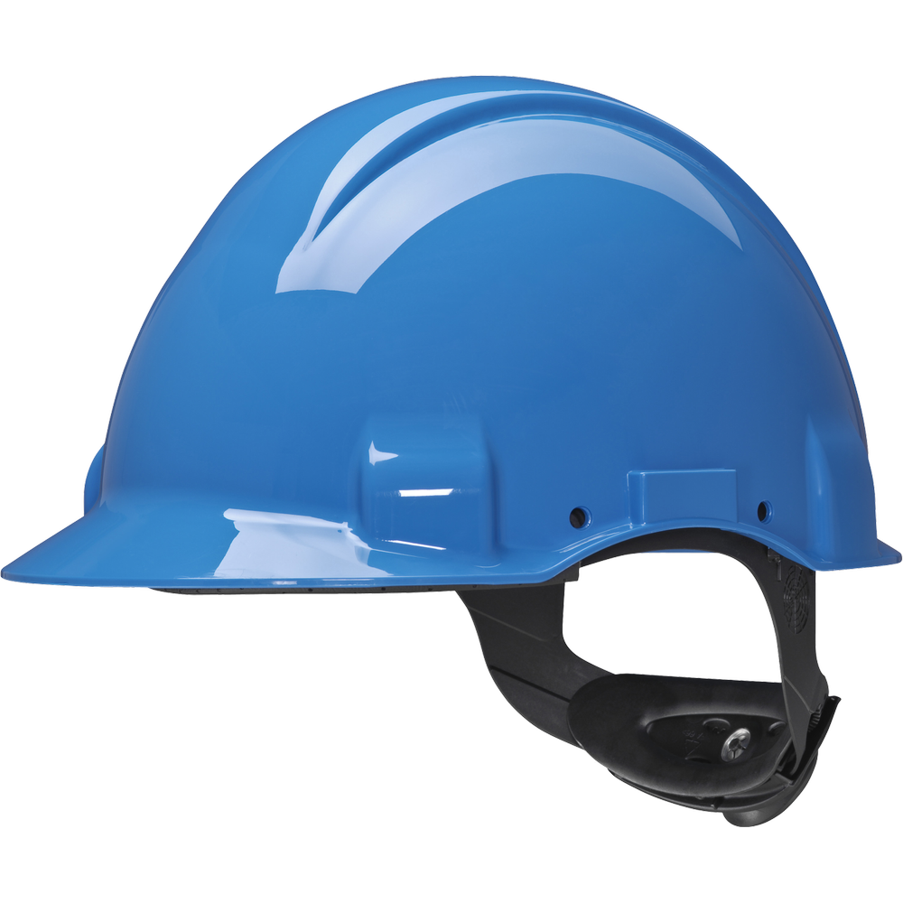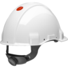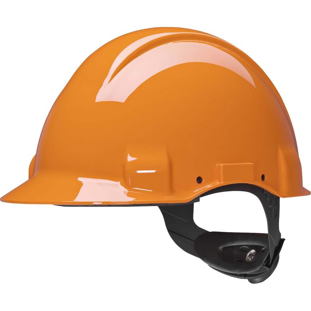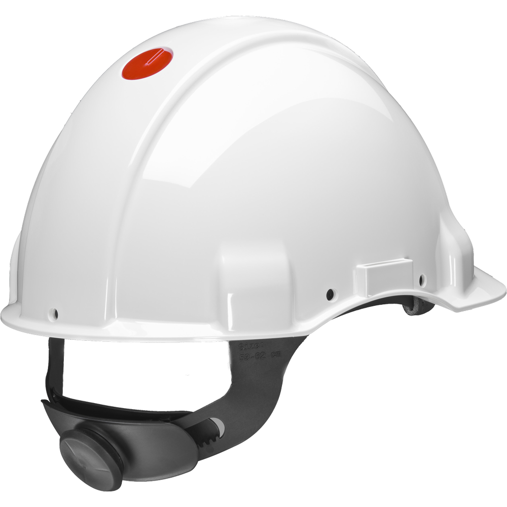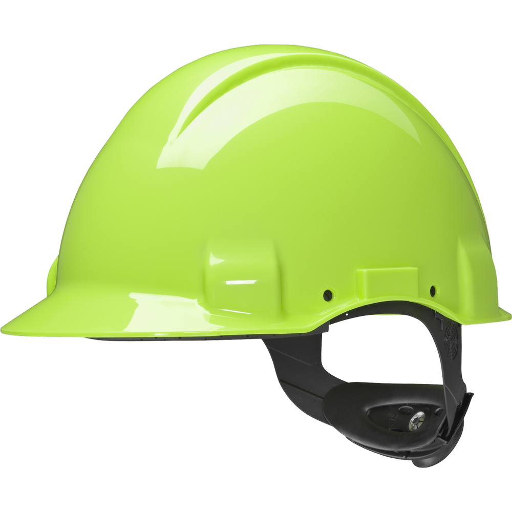 The 3M™ Safety Helmet G3001MUV 1000V-GB is a Hi-Viz (high-visibility) safety helmet that features a headband with an adjustment wheel and a leather sweatband to ensure comfort; ensures electrical isolation up to 1000VAC; The 3M Uvicator indicator tells you when your safety helmet has been overexposed to UV rays and it's time to replace it; a short visor provides a better view upwards; the headband can be rotated 180° for a better view when working in confined spaces.