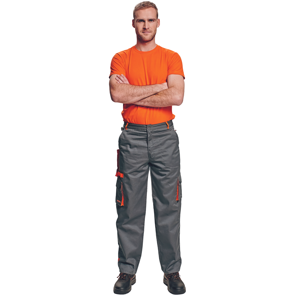 • pohodlné pracovné nohavice • elastický pás • 6 funkčných vreciek • nastaviteľná šírka nohavíc pomocou suchého zipsu