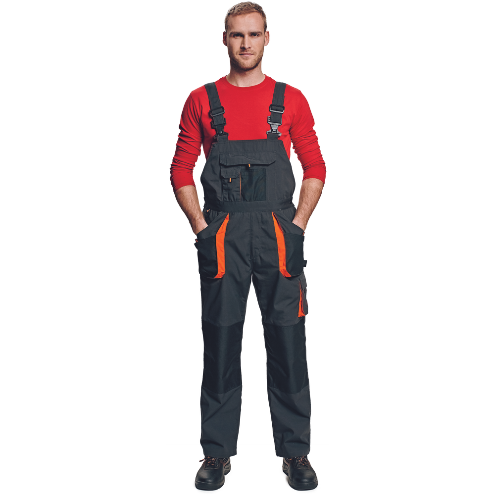 • zateplená verzia štandardných montérok EMERTON • vnútorná vrstva bavlnený flanel • tepelný komfort pri práci i pri nižších vonkajších teplotách • montérkové nohavice s náprsenkou pohodlného strihu a s vysokou odolnosťo • namáhané miesta vystužené materiálom polyester 600D • zosilnené zdvojené kolená pre vloženie nákolenníkov • pútko na kladivo