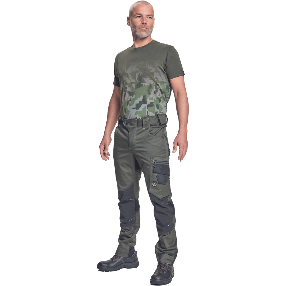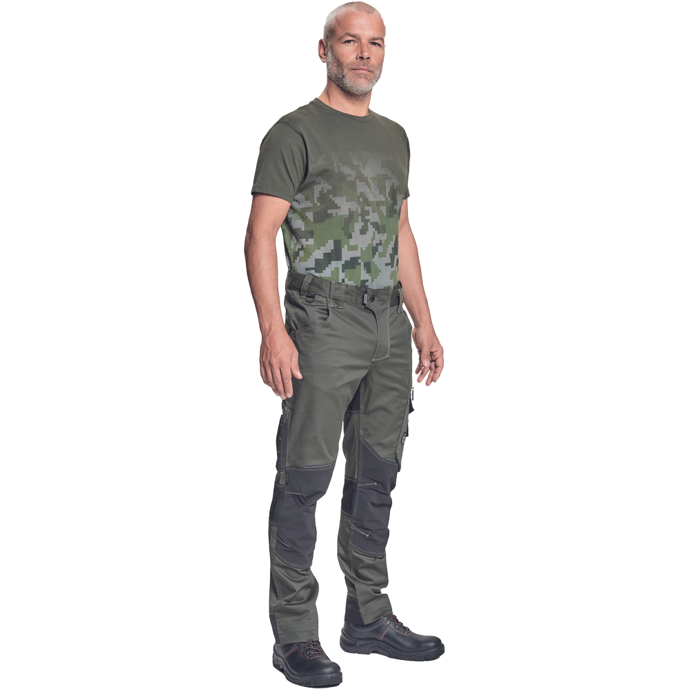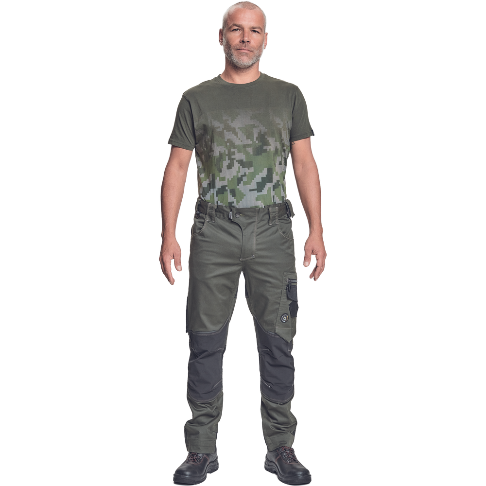 • pracovné nohavice • elastický inovatívny materiál TRIFIBETEX® • slim strih • znížený pružný pás • odolné trojité prešitie nohavic a sedu • 2 predné klínové vrecká • 2 zadné vrecká na suchý zips • ľavé stehenné multifunkčné vrecko • pravé stehenné vrecko na meter a nôž • "D" krúžok • pútko na náradie v páse • CORDURA zosilnenie v oblasti kolien • originálne spracovanie zapínania nohavíc • reflexné prvky vo farebnom odtieni • nastaviteľná dĺžka nohavíc • možnosť predĺženia až o 5 cm